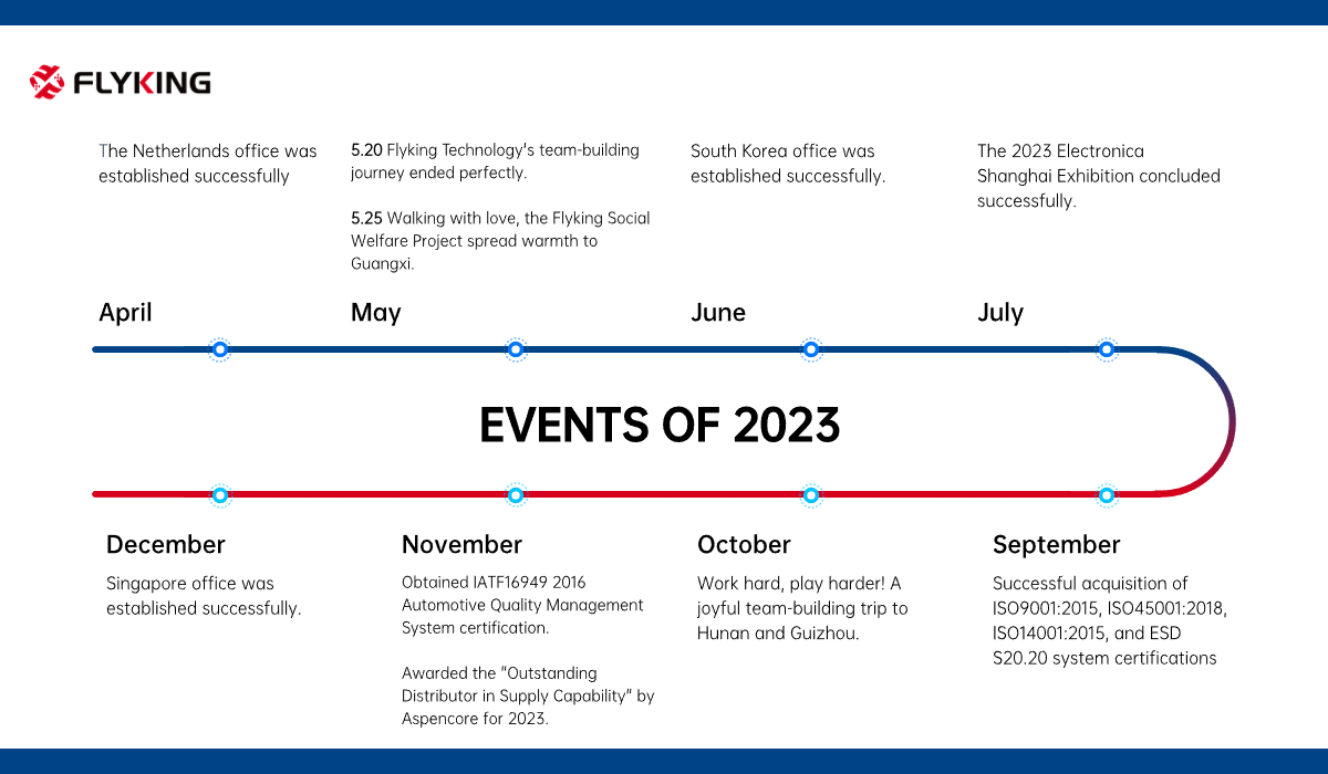Further Journey: To better serve global customers, we established new offices in the Netherlands, South Korea, and Singapore, collaborating with our offices in China, Germany, and the United States. We are dedicated to becoming a long-term trusted partner in the electronic component supply chain for customers. In the future, Flyking will further enhance local characteristics to provide more efficient and convenient supply chain services to global customers!