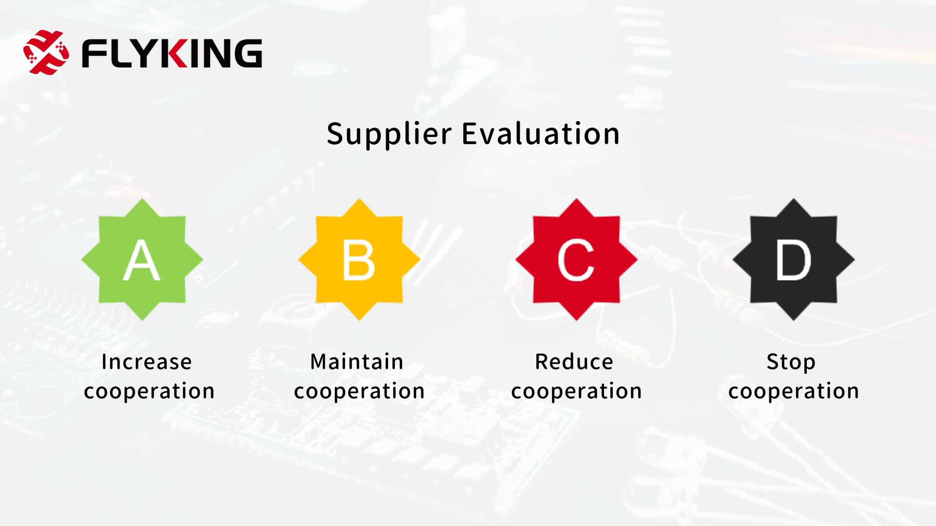 ISO9001 is the standard for measuring the integrity and compliance of an organization's quality management system. To guarantee the quality of electronic components received by our customers, Flyking Technology has set up a comprehensive quality managing process.