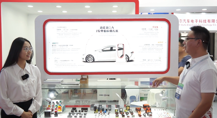Grand Vision has also showcased how we can help with the electric vehicle and charging pile electrical solutions. Our cold terminals, connectors, wiring harness, and transformers have truly made our solutions for the automotive supply chain a one-stop service. During the interview, Mr. Chen introduced various types of terminals that comply with automotive wiring harness standards and can meet CE, UL, ROHS, and REACH standards, as well as a complete set of customized services for terminals, which enable us to provide comprehensive solutions. In addition, he also explained Grand Vision's franchised lines for electric power components, including Hongfa Group, a company with 60%-70% market share of the automotive relay; Acxion, which is invested by Phoenix; and General Connectivity, which is compliant with EV high-voltage harnesses.